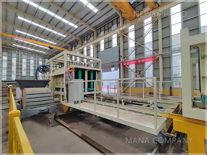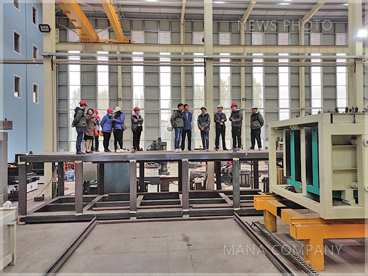 瑪納公司研制的“雙向空心復合外墻板”成組立模(子母模技術)生產線現場試驗線演示運行,各位領導共同觀看后給予了充分的肯定及認可。